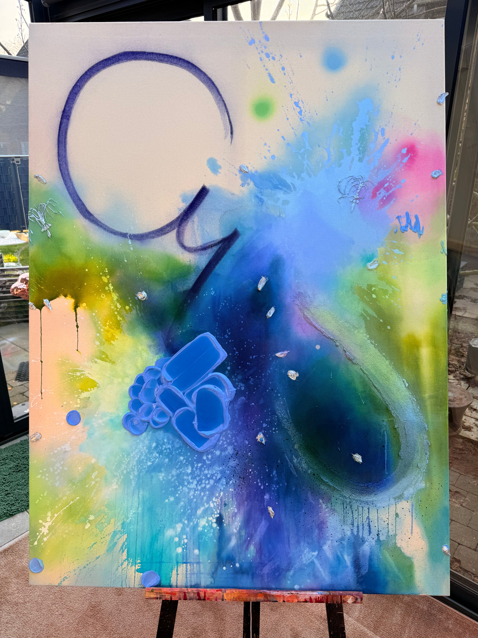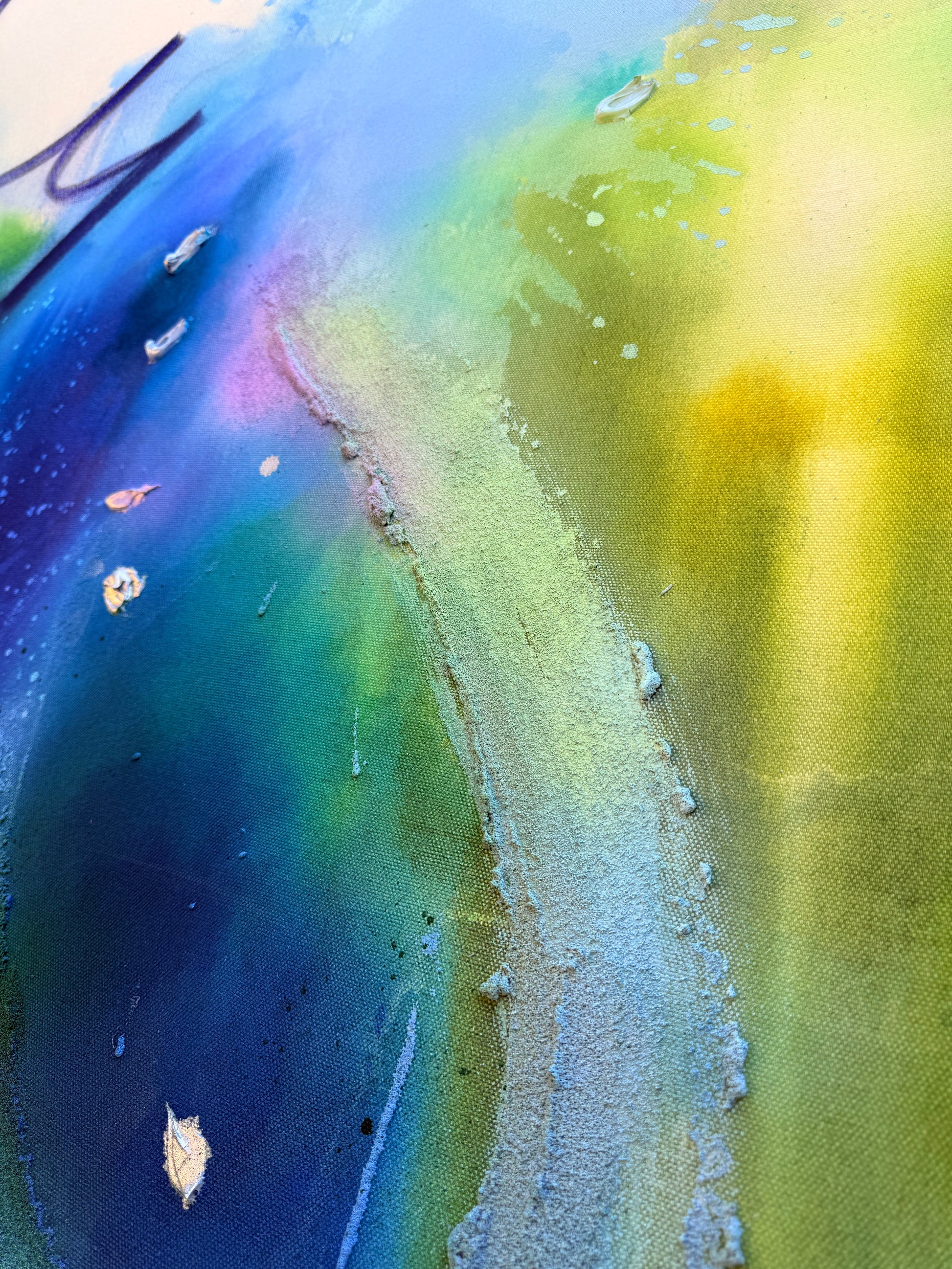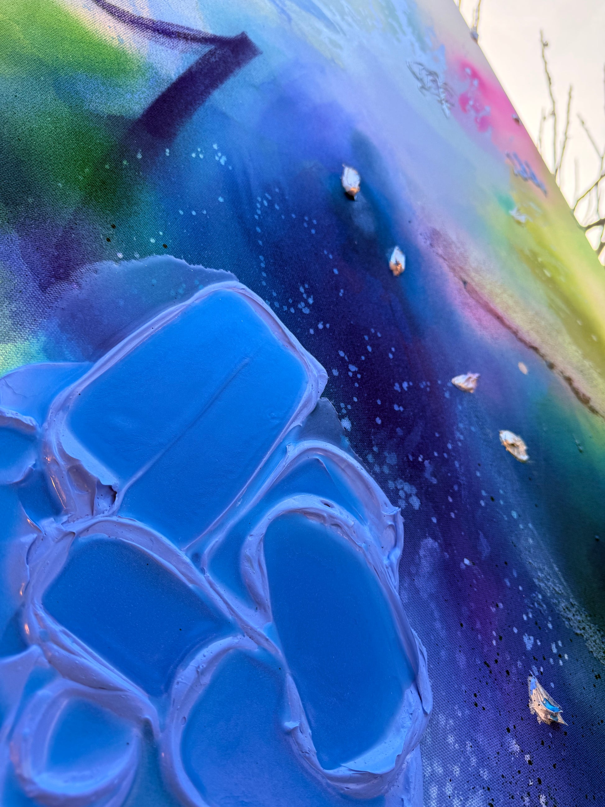 ,,I See You“ ist eine Hommage an Avatar und an das leise, kraftvolle Band zwischen Mensch und Natur. In schimmernden Blau- und Grüntönen entfaltet sich eine fließende, fast atmende Bildwelt – wie ein Echo von Wasser, Wind und lebendiger Landschaft. Silberne Akzente setzen glanzvolle Lichtpunkte, die an Energie, Erinnerung und Verbundenheit erinnern. Das Werk lädt dazu ein, wirklich hinzusehen: die Schönheit der Erde zu würdigen und die tiefe, zwischenmenschliche Verbindung zu spüren, die entsteht, wenn wir einander und unserer Welt mit offenem Herzen begegnen.