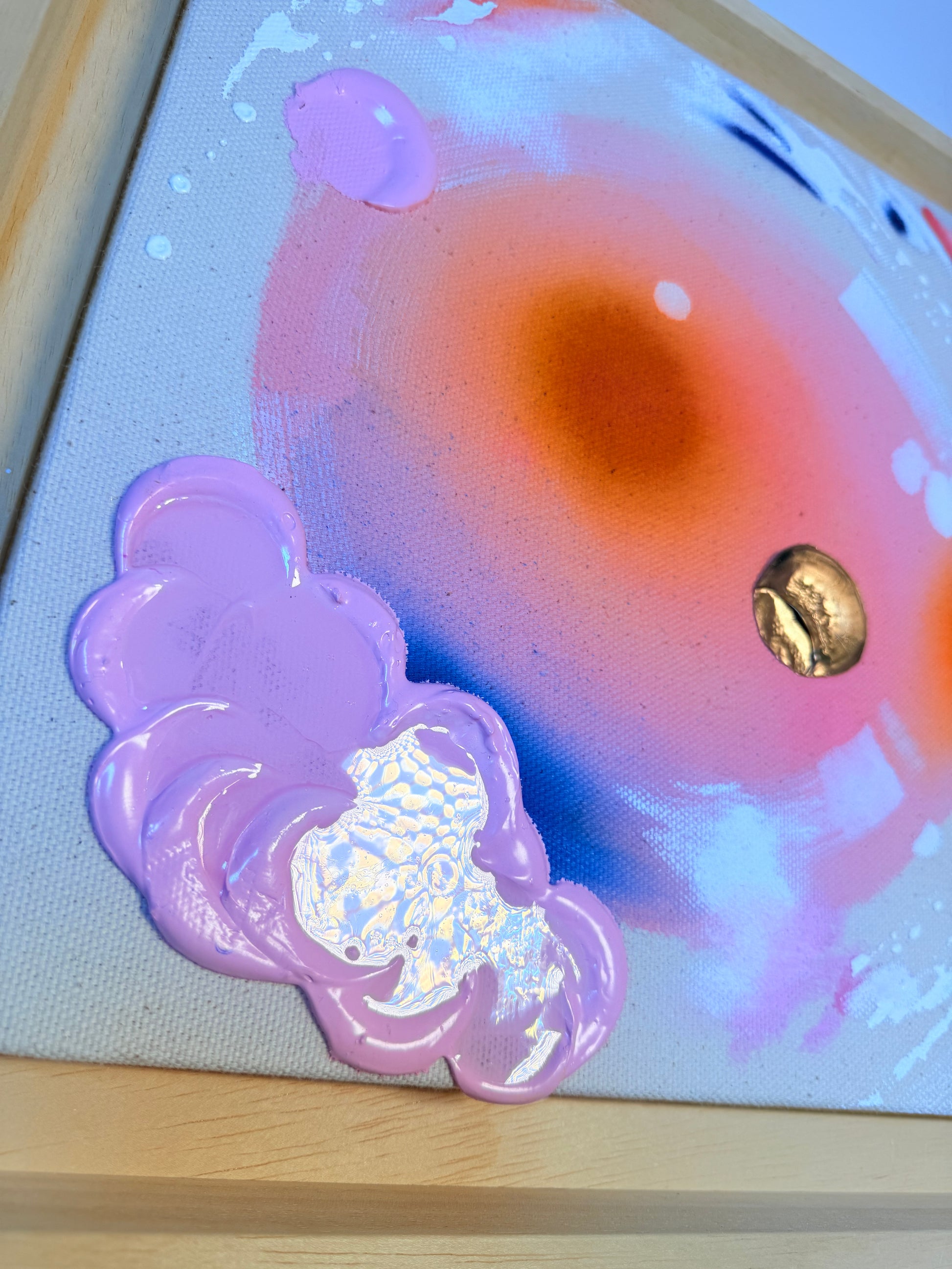 Diese Miniserie umfasst acht runde Kunstwerke, die durch ihre Spiegelflächen, metallischen Elemente und die charakteristische, kreisförmige Komposition verbunden sind. Die weißen Farbstritze stehen für die Spontanität des Moments, während die runden Formen und individuellen Farbstimmungen der einzelnen Werke an die Planeten unseres Sonnensystems erinnern. Jedes Bild folgt einer ähnlichen Grundstruktur und entfaltet dennoch durch seine eigene Farbwelt einen ganz besonderen Charakter. Die Minis wirken sowohl einzeln als auch in Kombination – zu zweit, zu viert oder als komplette Serie – und gewinnen durch die integrierte Spiegelfläche eine einzigartige, lebendige Präsenz. Ein hochwertiger Rahmen ist im Preis inbegriffen.
