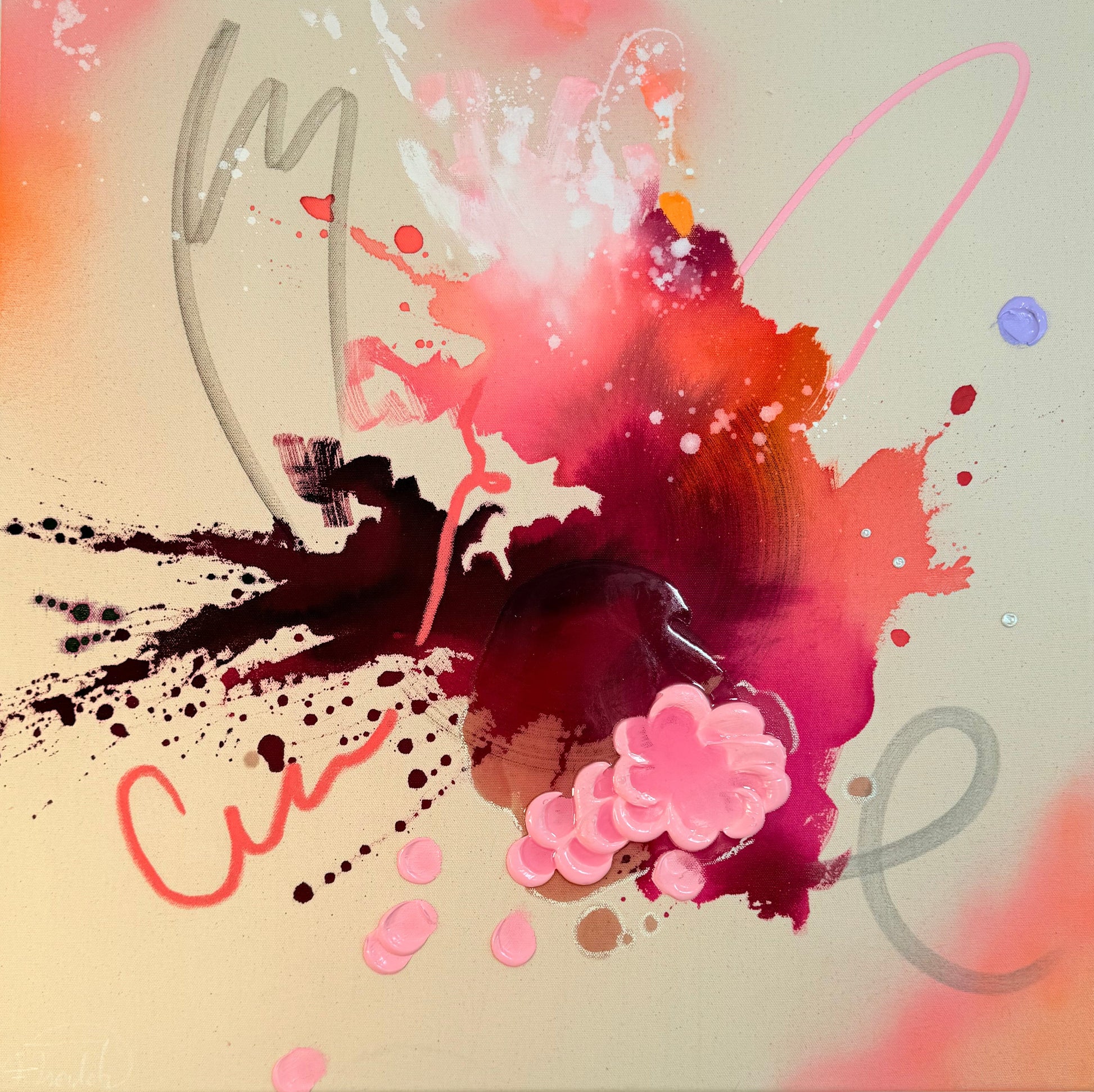 Die Trilogie „Herzenswärme“ vereint Rosa-, Orange-, Pink-, Flieder-, Lavendel- und Violetttöne zu einer warmen, harmonischen Farbwelt. Jedes Werk enthält ein eigenes Spiegelelement, das das Licht sanft reflektiert und den Bildern eine lebendige Tiefe verleiht.