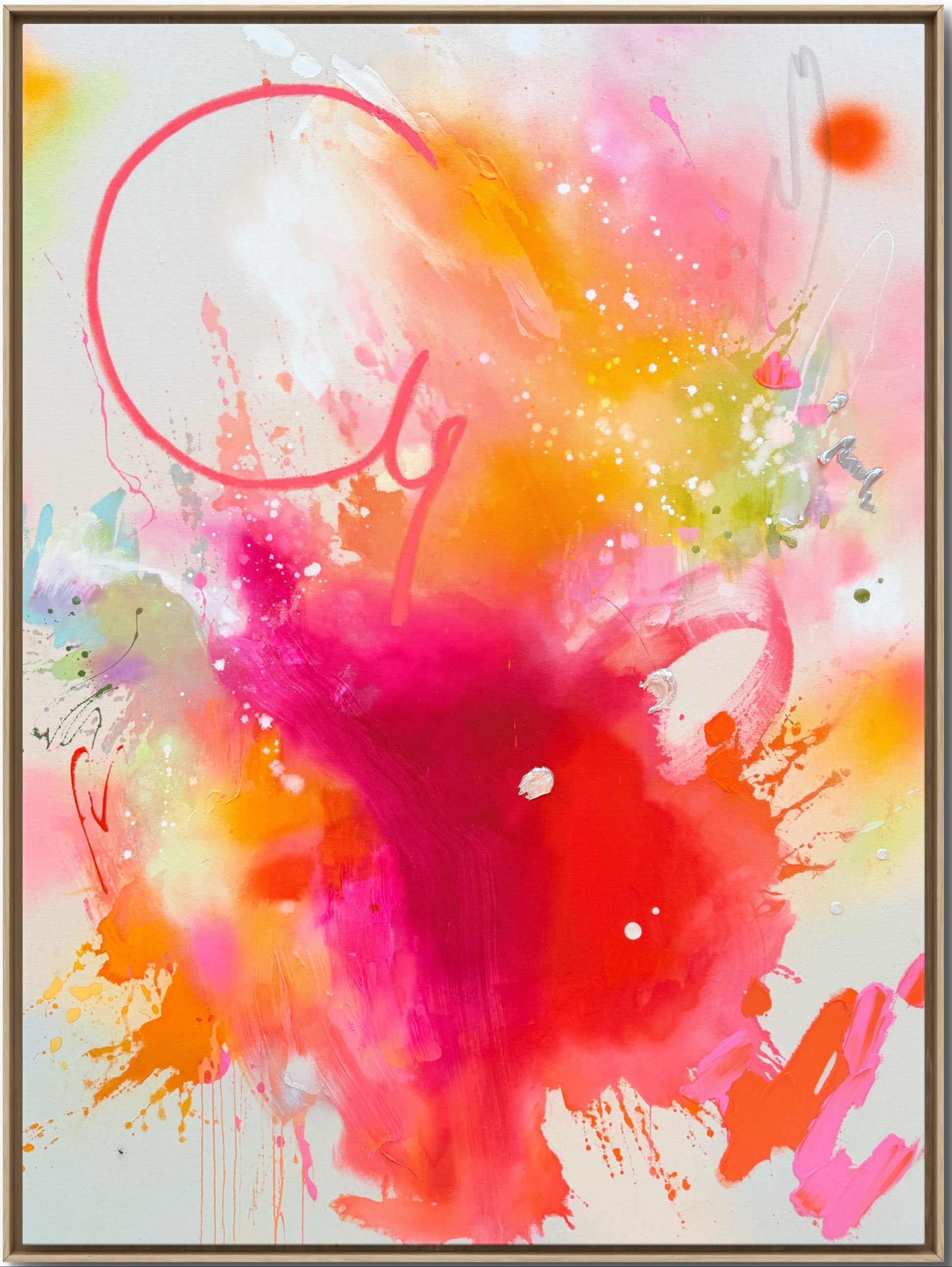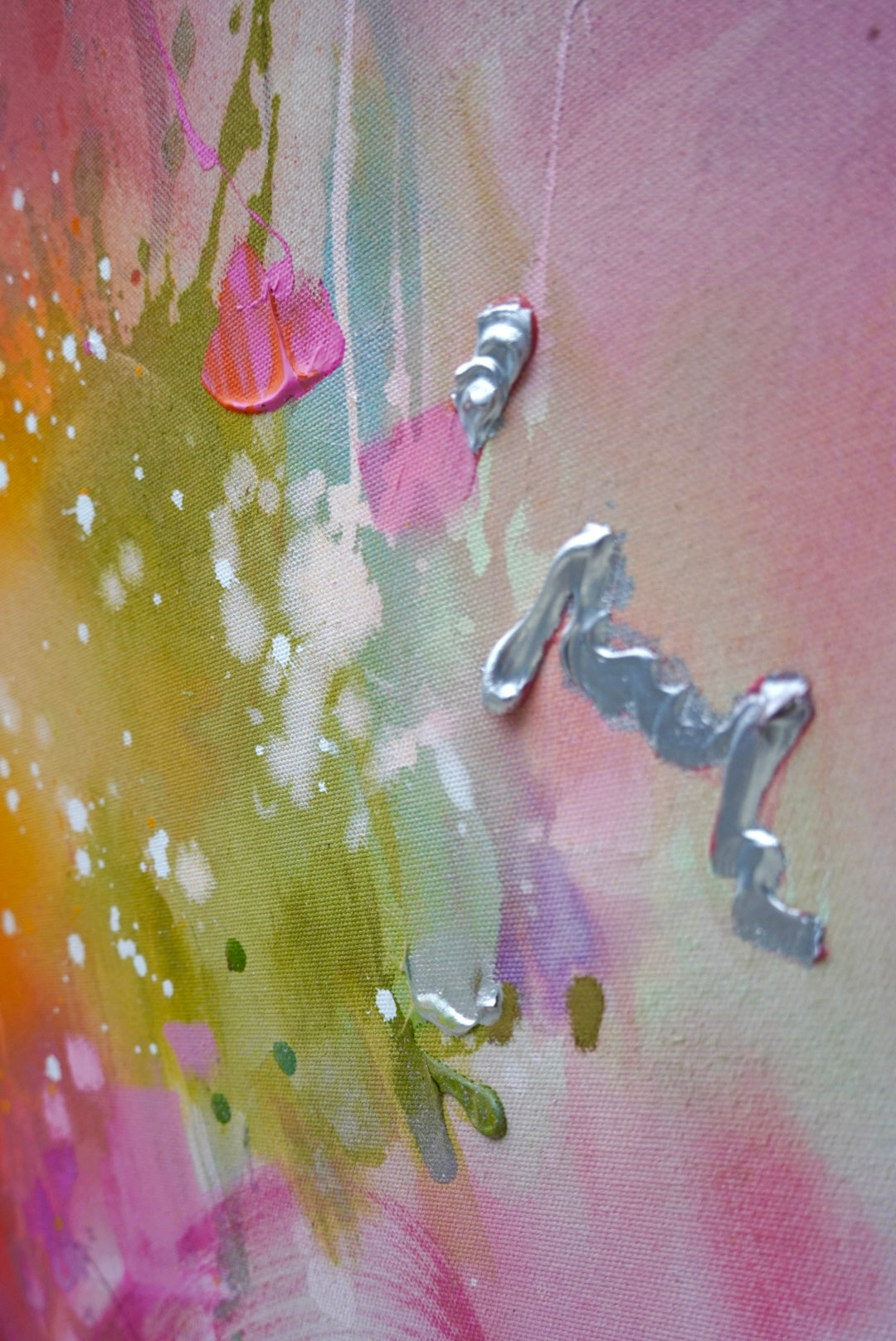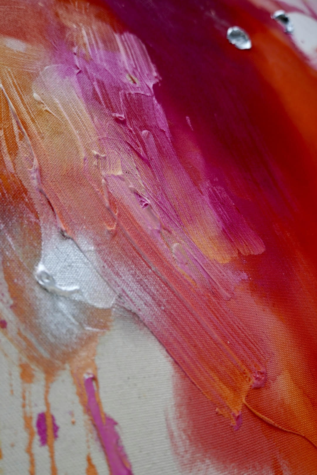 Zwischen vibrierenden Farben blitzen silberne Akzente auf – wie kurze Echos des Lichts, das vergeht.